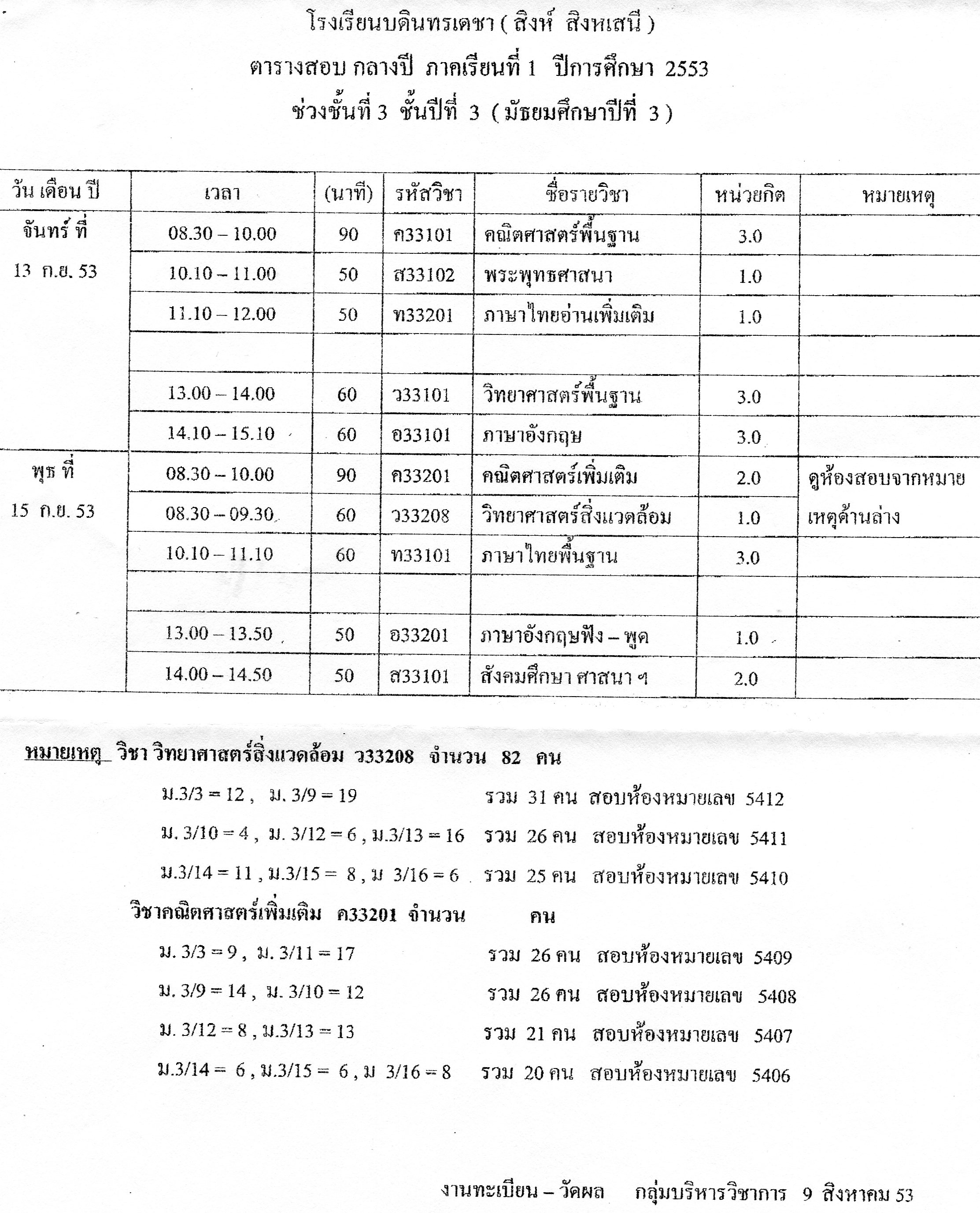 ตารางสอบปีนี้