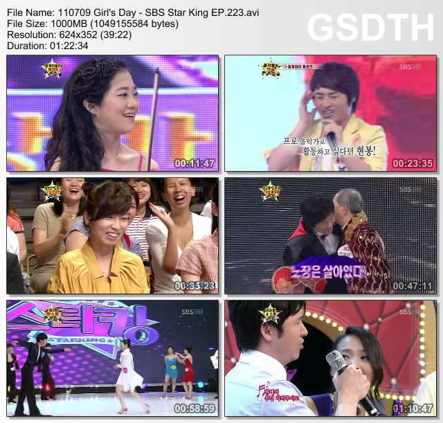http://www.girlsdaythailand.com/forums/topic/1167-show-110709-girls-day-sbs-star-king-ep223/
