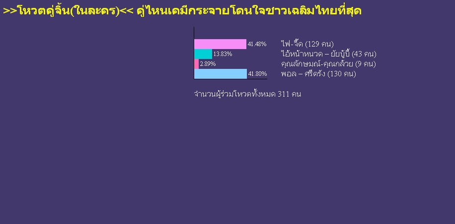 @CheerNy @kankantathavorn >>โหวตคู่จิ้น(ในละคร)โดนใจชาวเฉลิมไทย คะแนนโหวตแบบว่าแรงมาก จนต้องแคปภาพเก็บกันเลยย