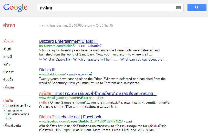google มันจะเมพไปไหน ... https://www.google.com/search?q=%E0%B8%81%E0%B8%A3%E0%B8%9F%E0%B8%B4%E0%B8%AA%E0%B8%99&ie=utf-8&oe=utf-8&aq=t&rls=org.mozilla:en-US:official&client=firefox-beta