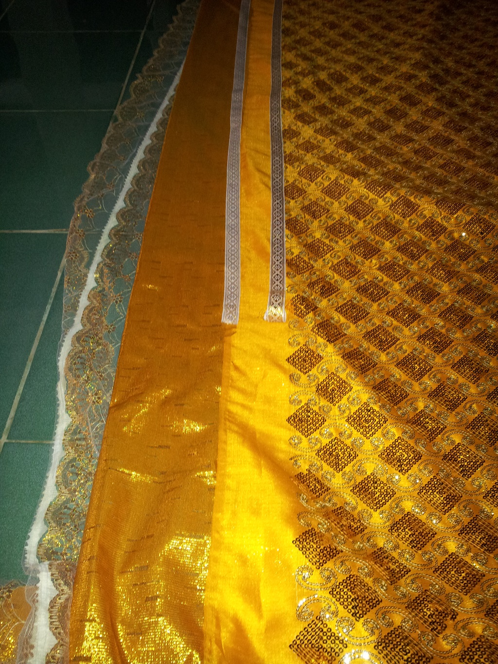 เอาริบบิ้นวางเป็นแนวสำหรับเอาเพชรวาง