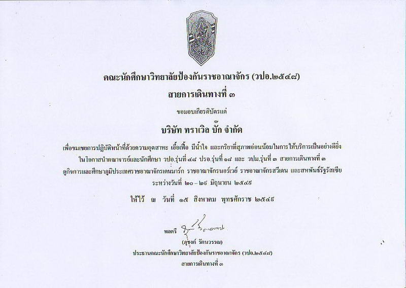เกียรติบัตรจากคณะวิทยาลัยป้องกันราชอาณาจักร (วปอ)