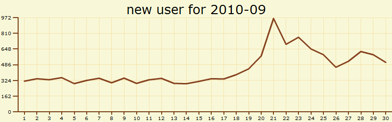 #thaitrend กราฟคนไทยสมัครทวิตเตอร์แต่ละวัน ประจำเดือนกันยายน 2553