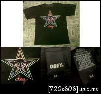 เสื้อ Obey สกรีนโลโก้ด้านหน้าเต็มๆ ผ้านิ่มมาก สีดำ ไซท์ Mฝรั่ง ขนาด อก21 ยาว29 สภาพ87% ราคา450บาท